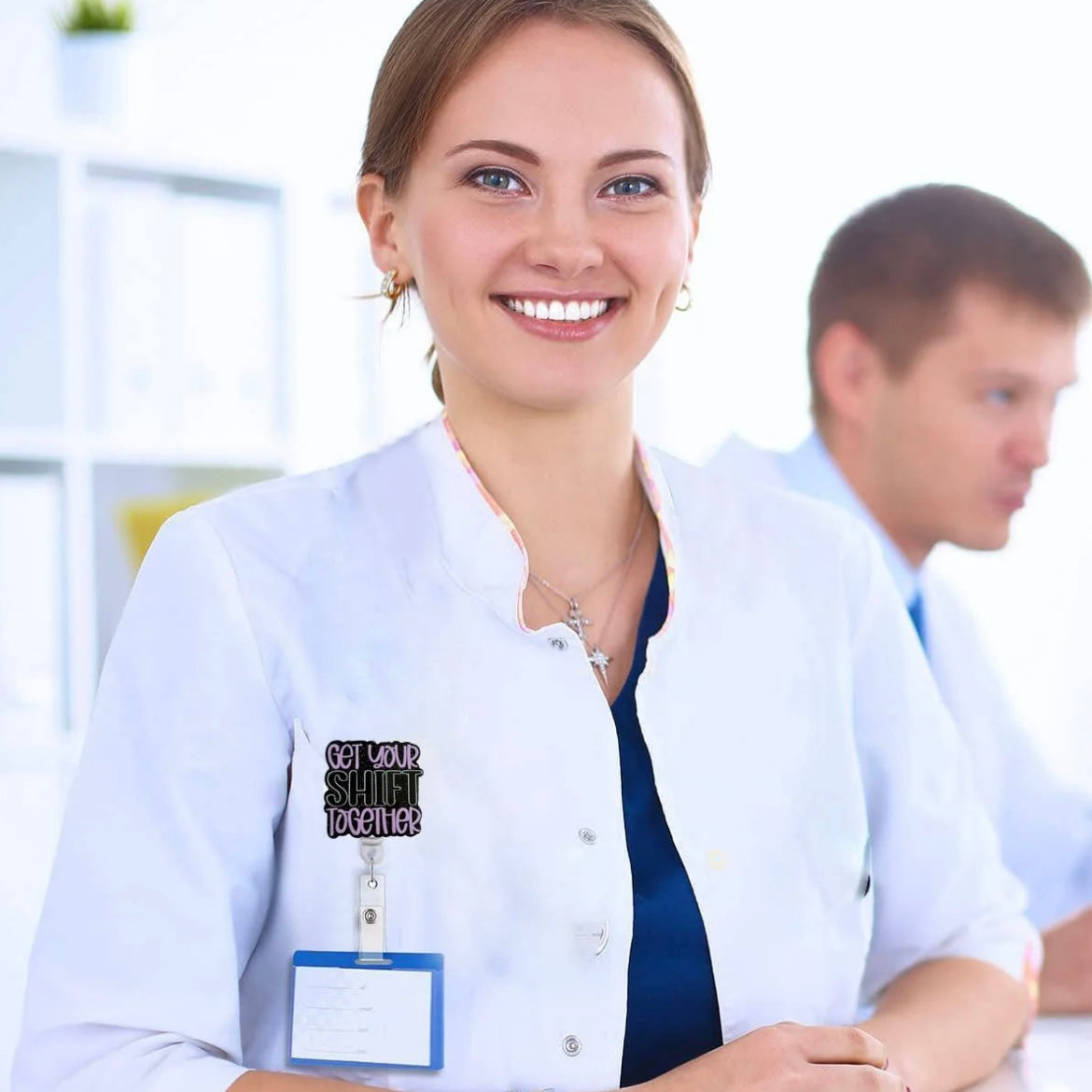Add a touch of humor and personality to your workday with our Get Your Shift Together Badge Reel! Perfect for nurses, healthcare workers, and anyone who wants to keep their ID handy while spreading a little laughter on the floor.