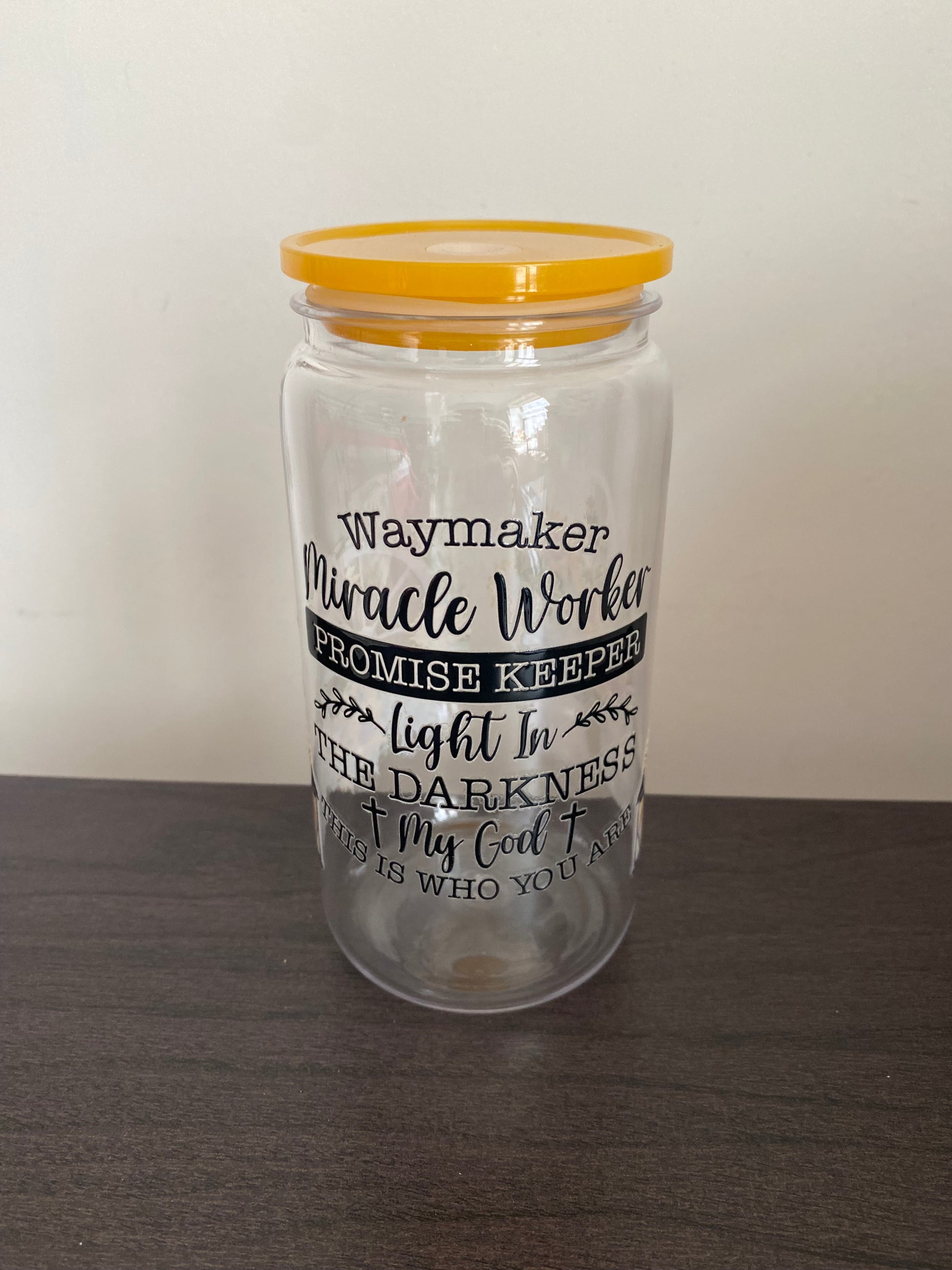 Introducing our Waymaker 16oz Acrylic Tumbler, where style meets inspiration with every sip. This sleek and durable tumbler is not just a vessel for your favorite beverages; it’s a statement of faith and positivity.